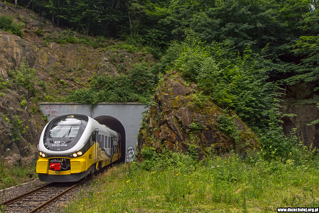 jako osobowy z Głuszycy do Wałbrzycha Głównego wyjeżdża z tunelu pod Małym