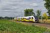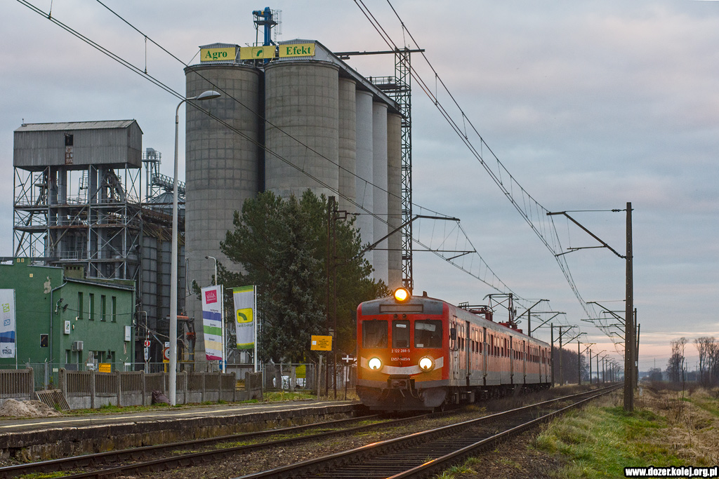 z drugim EN57AL jako pociąg REGIO do Leszna zbliżają się do stacji Skokowa -