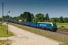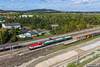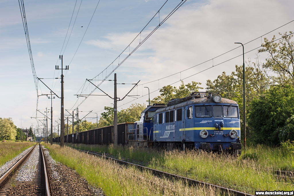 EU07E-082 i 6Dg-182 z zamkniętym pociągiem Majkoltrans stoją na stacji