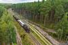 FDM-REW z ładownym pociągiem towarowym zbliża się do Boreczka szlakiem z