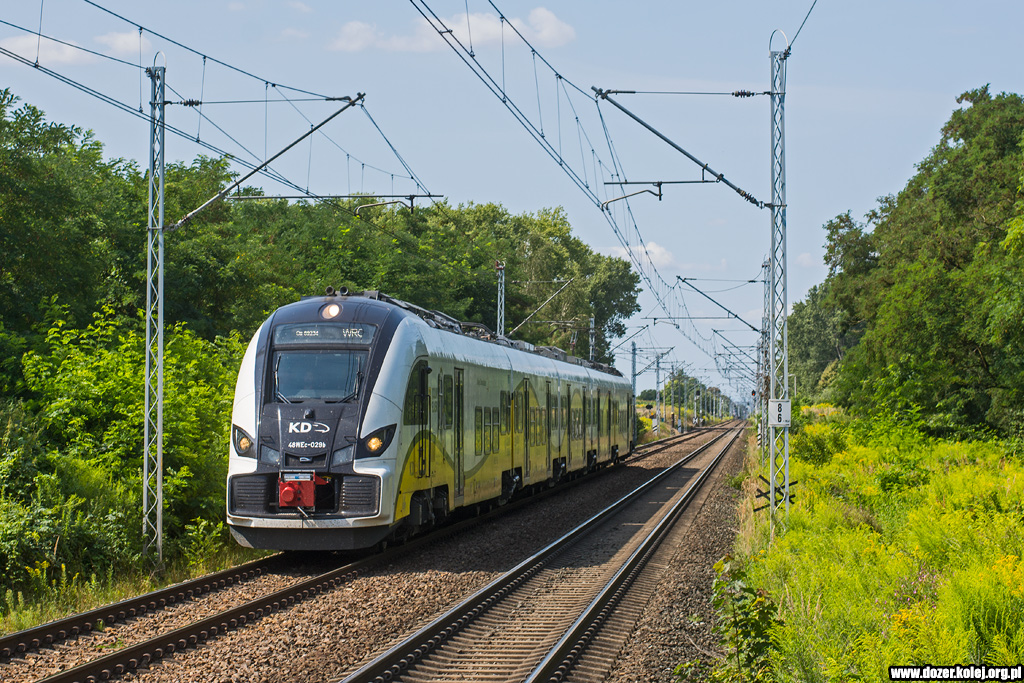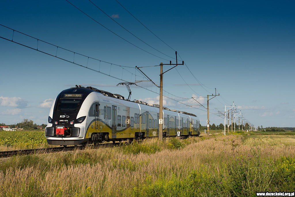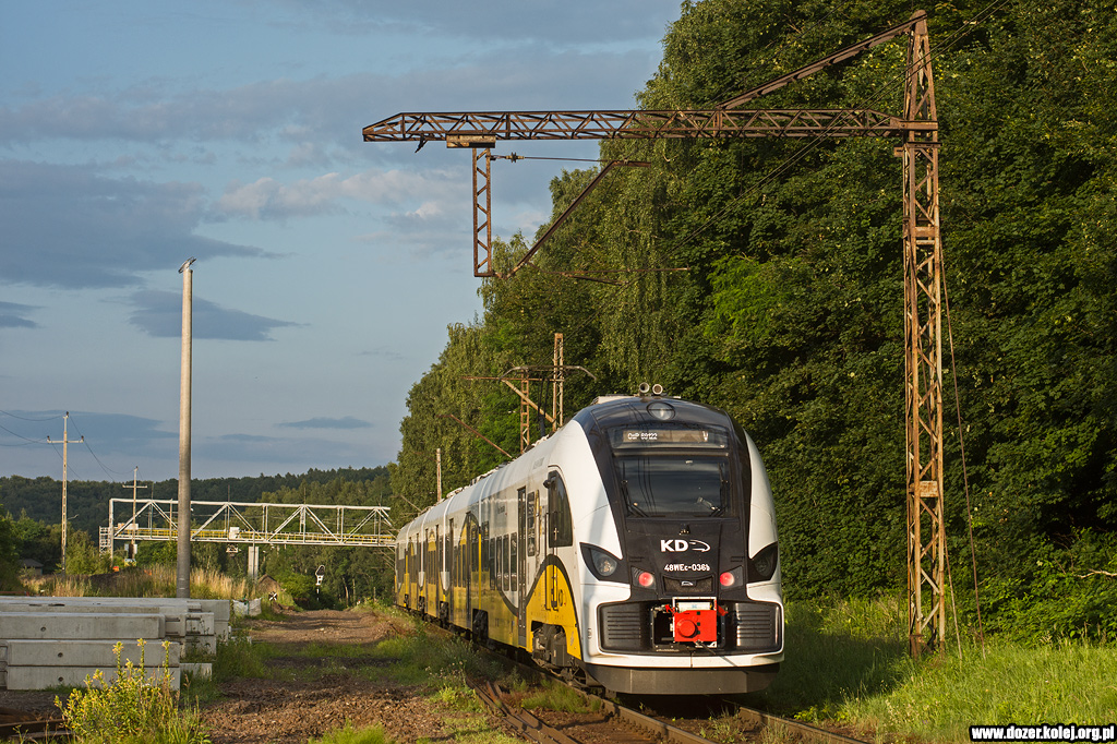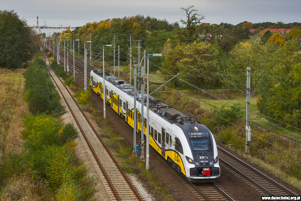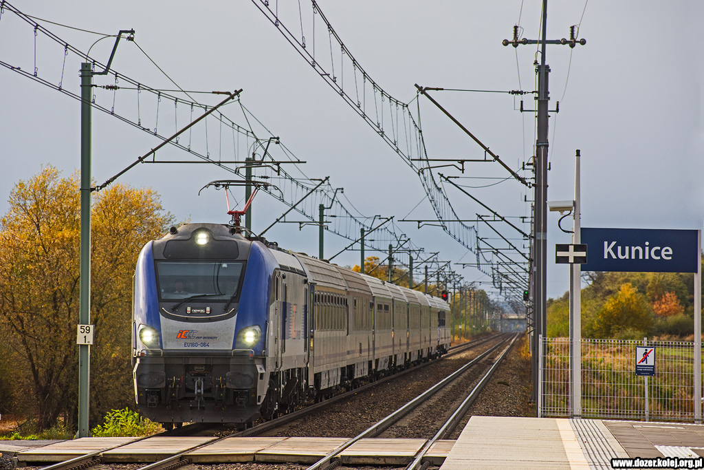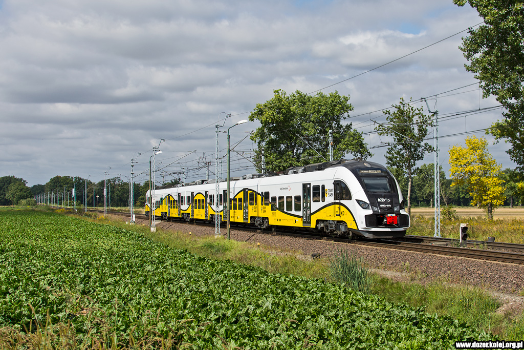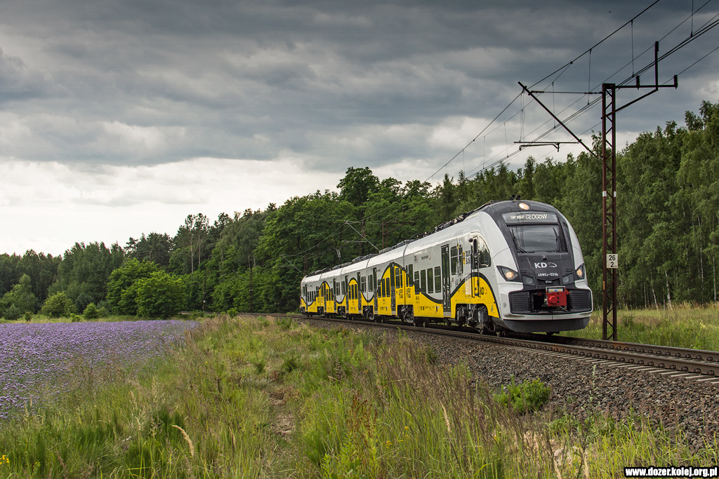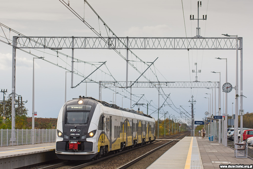 pociąg KD z Wrocławia Głównego do Głogowa mija na biegu przystanek Kunice -