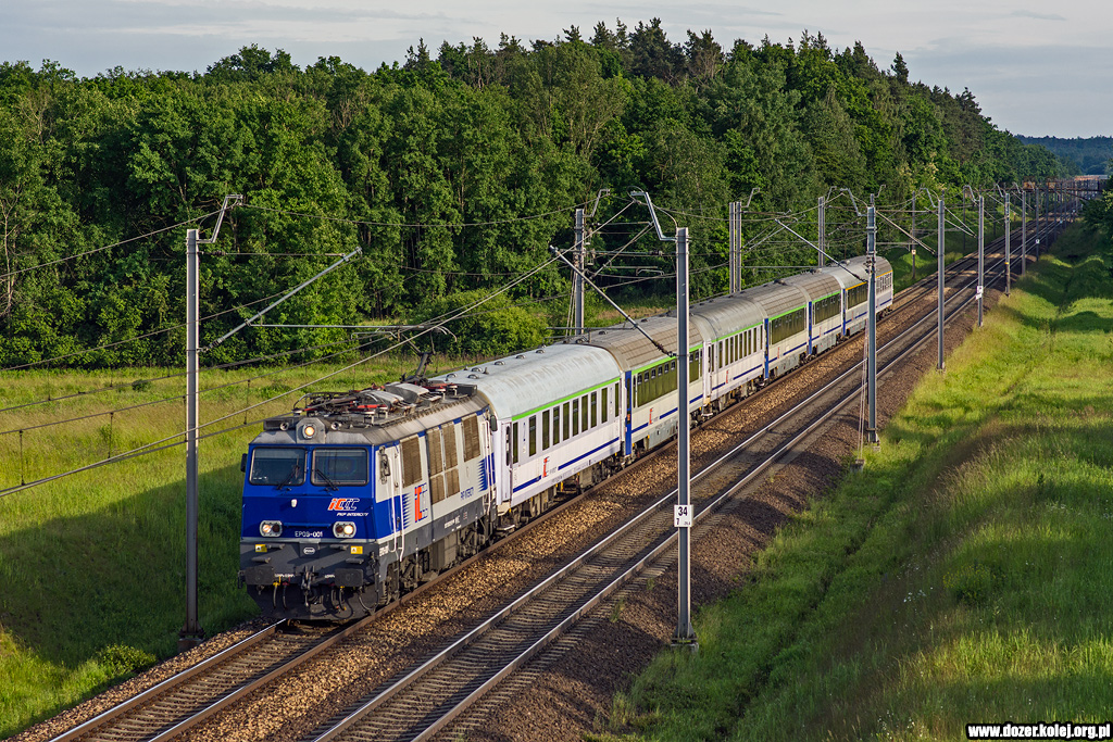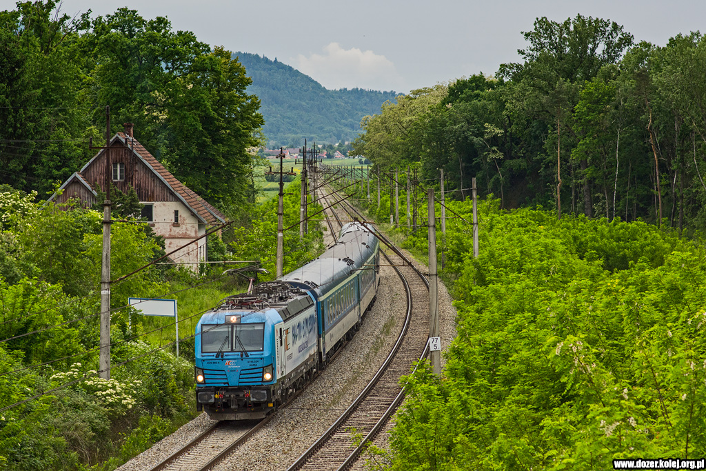 "Andrzej" z pociągiem IC "Saxonia" relacji Kraków Gł.-Leipzig Hbf mija