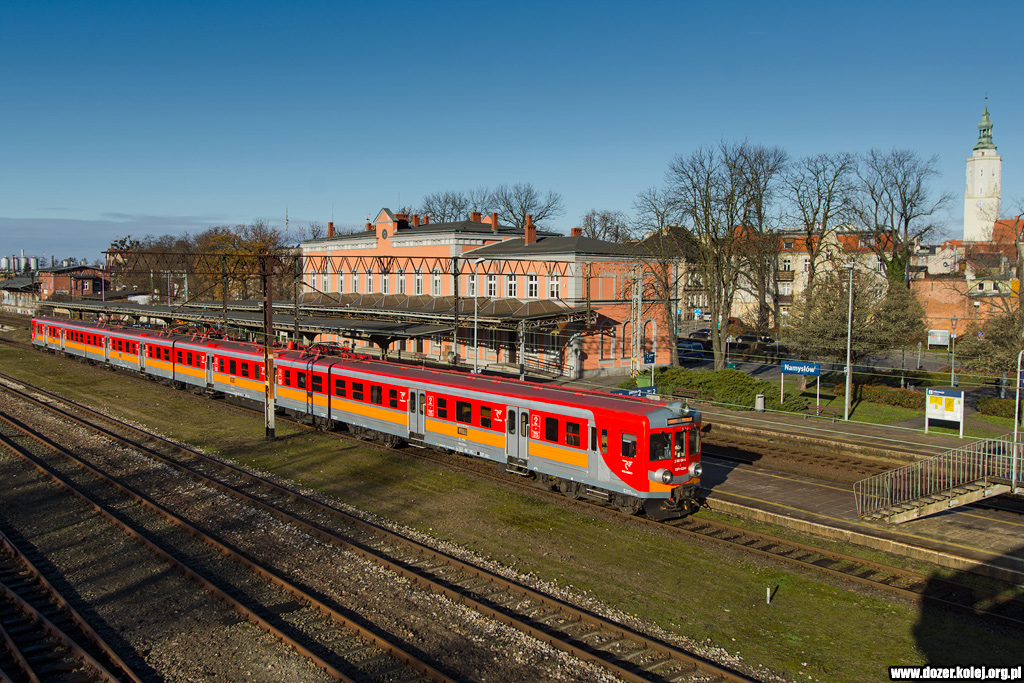pociąg REGIO z Wrocławia Głównego wjeżdża na stację Namysłów, gdzie zakończy