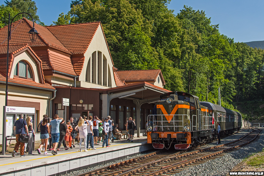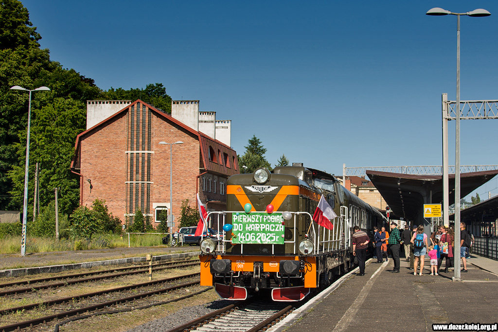 pociągiem specjalnym do Jeleniej Góry stoi w Karpaczu czekając na odjazd