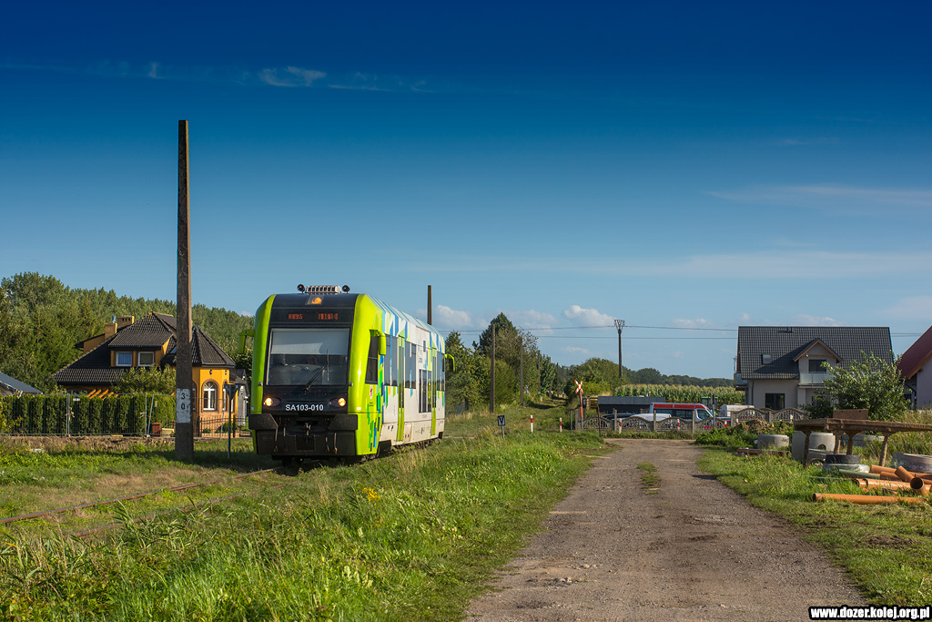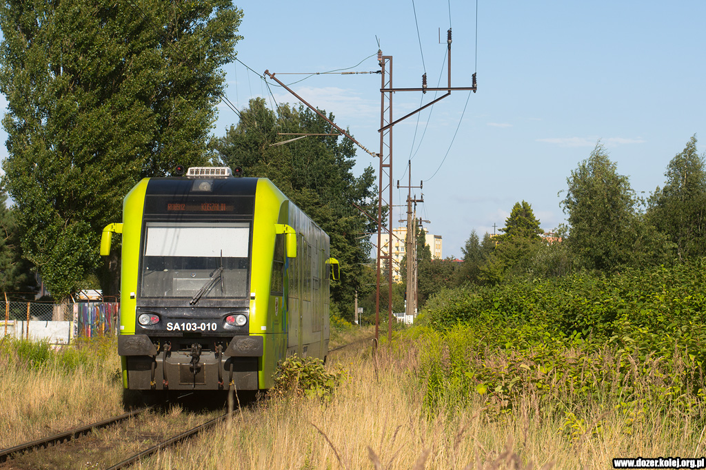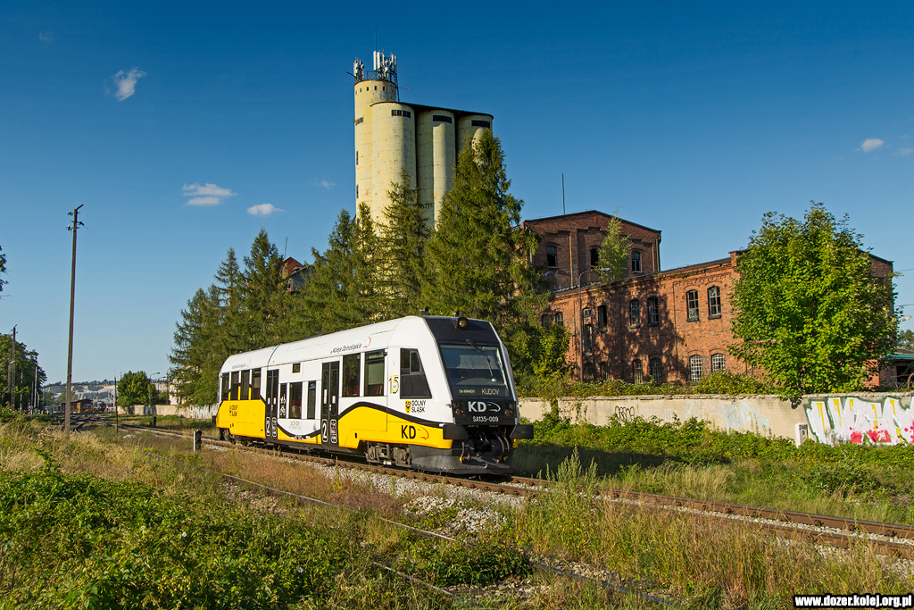 SA109-003 zbliżają się do stacji Dzierżoniów Śląski jadąc jako pociąg z
