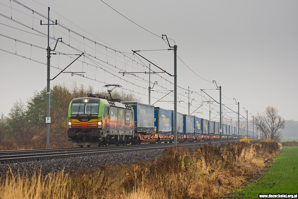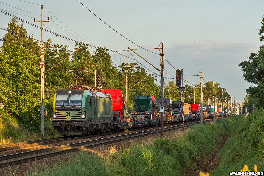 składem platform z naczepami zbliża się do Wrocławia Leśnicy -