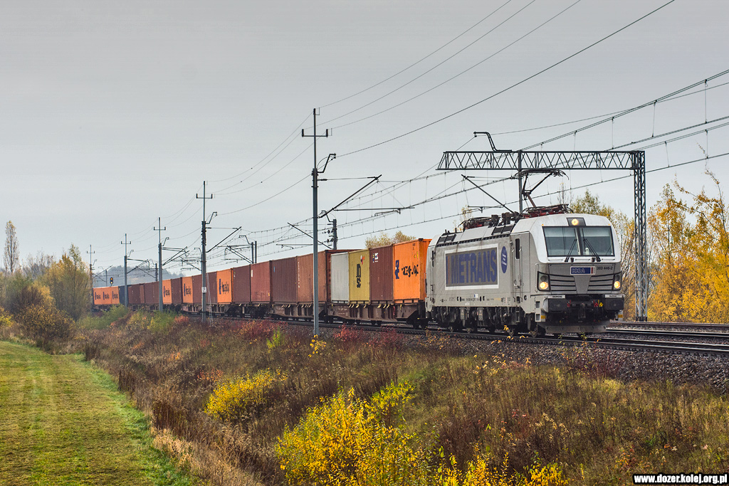 pociągiem kontenerowym Metransu opuszcza Szczedrzykowice i zmierza w stronę